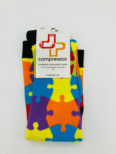Compressox 15-20 mmHg, Knit Compression Socks - Autism Awareness