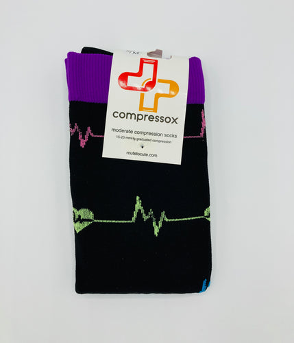 Compressox 15-20 mmHg, Knit Compression Socks - EKG Hearts